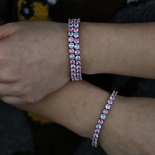 HOT ! Trendy Single-Row 14K Gold Tennis Chain, Bracelet with 5mm White and Pink Moissanite, Great Gift for Fashion Lovers, Women‘s and Wives