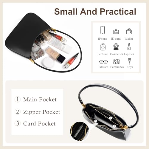 Genuine Leather Shoulder Bag for Women, Crescent Satchel with Zip Closure, Lightweight Handbag 6