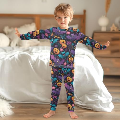 Pajama Sets Long Sleeve Halloween Bats Pumpkins Soft Comfy Sleepwear 2 Piece PJS 3-8T 2