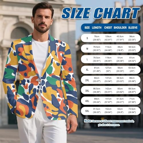 • Material: This men's print blazer is made of smooth and soft polyester fabric. High-quality fabric with elasticity and toughness, breathable, delicate and comfortable, not easy to wrinkle, making this blazer more wearable.