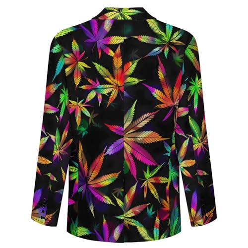 HOT ! Colorful Rainbow Weed Leaves Plant Mens Casual Blazer Button Suit Jacket Lightweight Sport Coat for Work Business