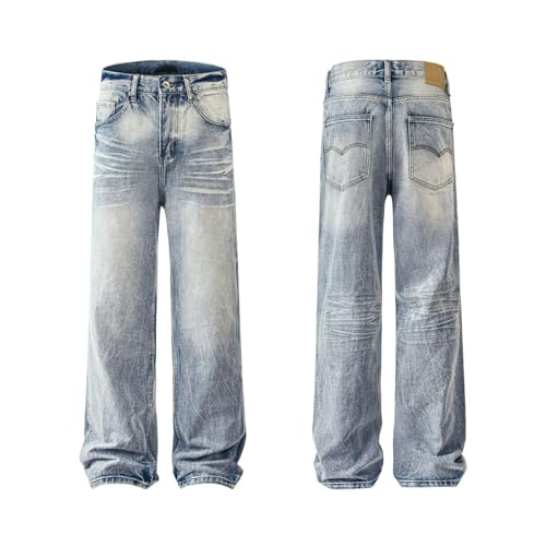 More information about Jeans Pants Trousers Denim Retro Trendy Street Washed Blue Grinding Fading Casual Commuter Straight Leg for Men