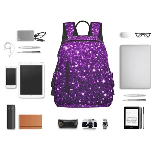 More information about Beautiful Dark Purple Bling Glitter Sparkles Pattern Backpack Lightweight Backpack For College Travel Work For Men And Women