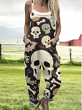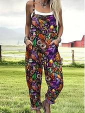 More information about Halloween Women's Dungarees Active Sleeveless Sleeveless Straight Square Neck Pocket with Pocket Vacation Daily Loose Fit Black Pink Purple Summer