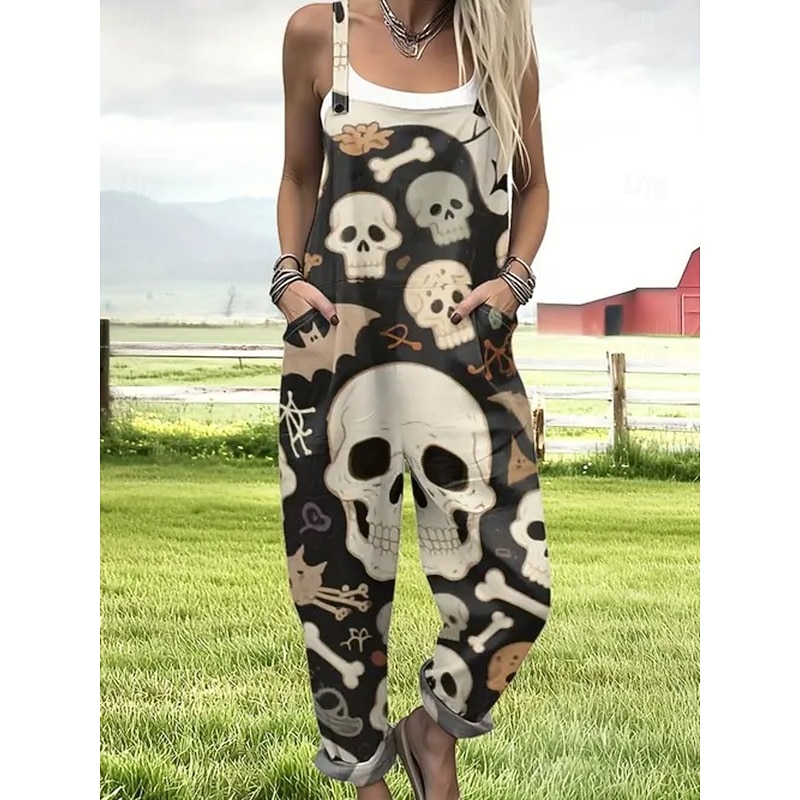 Halloween Women's Dungarees Active Sleeveless Sleeveless Straight Square Neck Pocket with Pocket Vacation Daily Loose Fit Black Pink Purple Summer 10