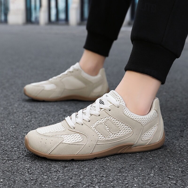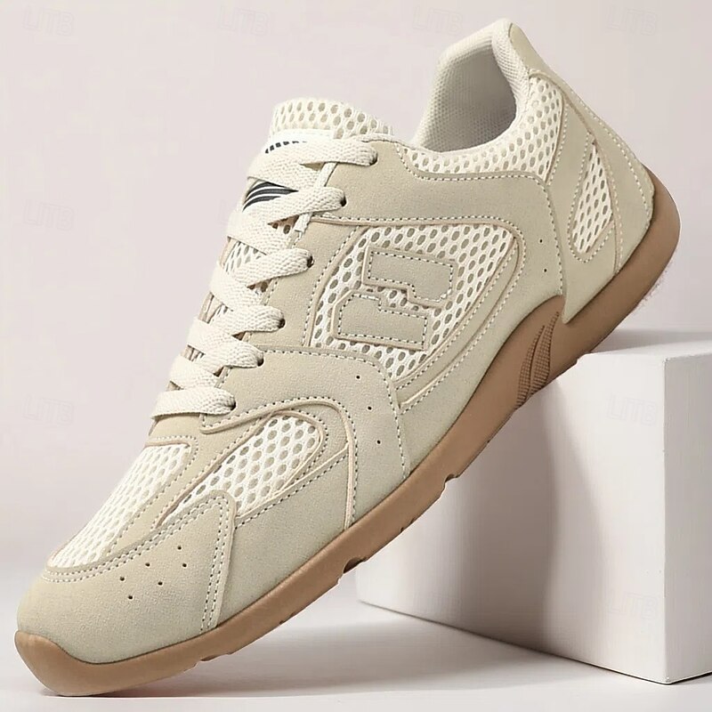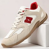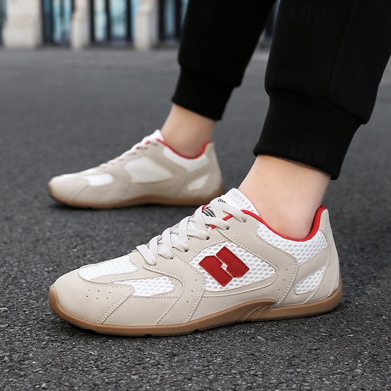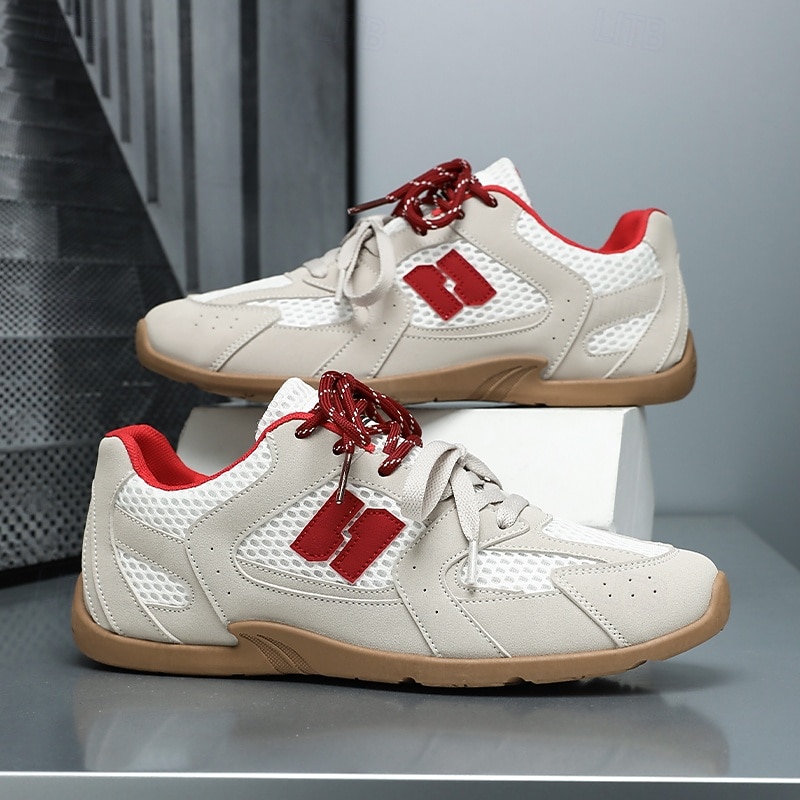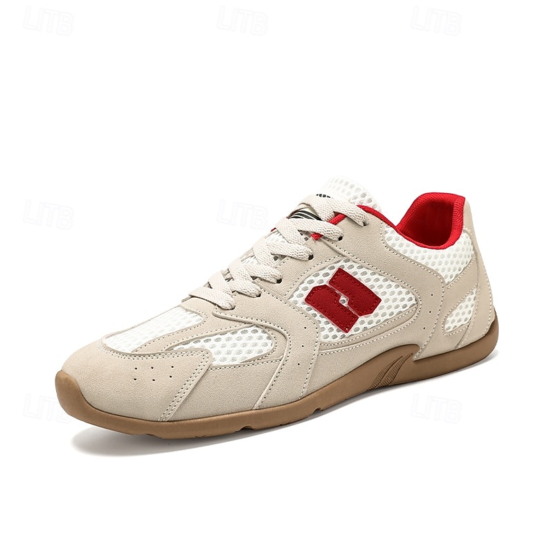 HOT ! Men's Beige and Red Running Sneakers with Ventilated Upper and Durable Sole - Performance-oriented, Trendy, Perfect for Fitness and Casual Outings