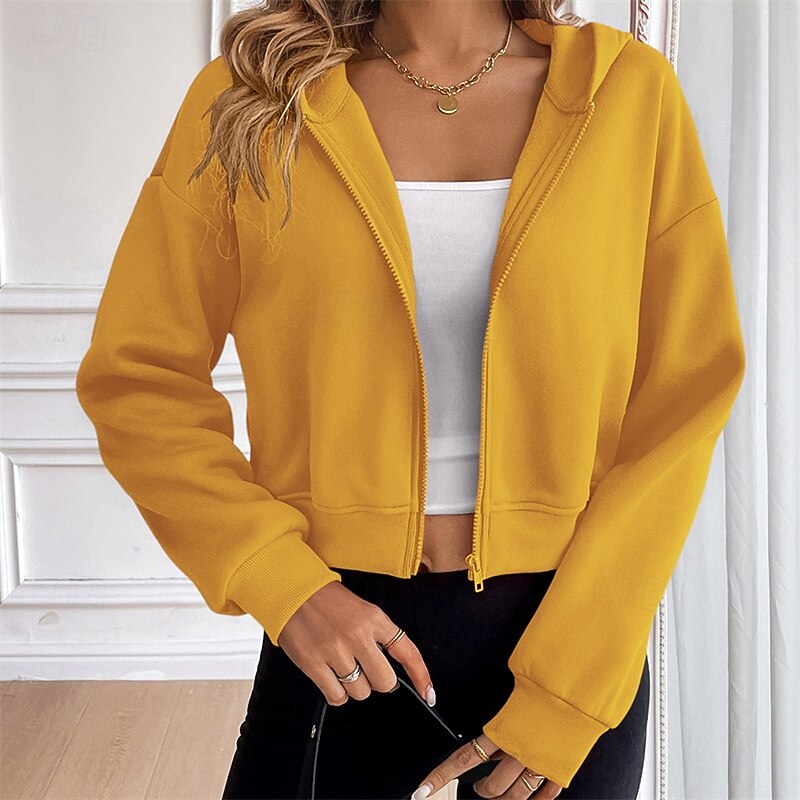 More information about Women's Zip Up Hoodie Hooded Jacket Zipper Pocket Long Sleeve Top Athleisure Fall Solid Colored Windproof Sportswear Activewear White Yellow Royal Blue