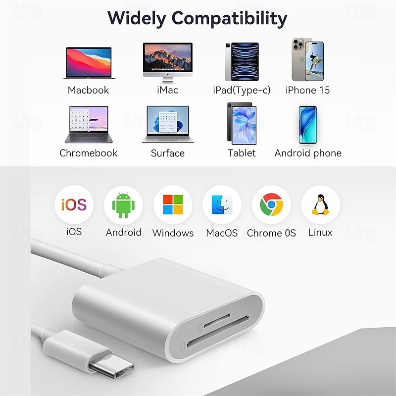$7.99 - USB C SD Card Reader SD Card Adapter with Dual Card Slots for iPhone 15 Pro iPad Mac MacBook Laptop Android USB-C/TypeC High-Speed Trail Camera Viewer Memory Card Reader Plug and Play 2025. Shop for cheap Cables & Adapters online? Buy at lightinthebox.com on sale today!