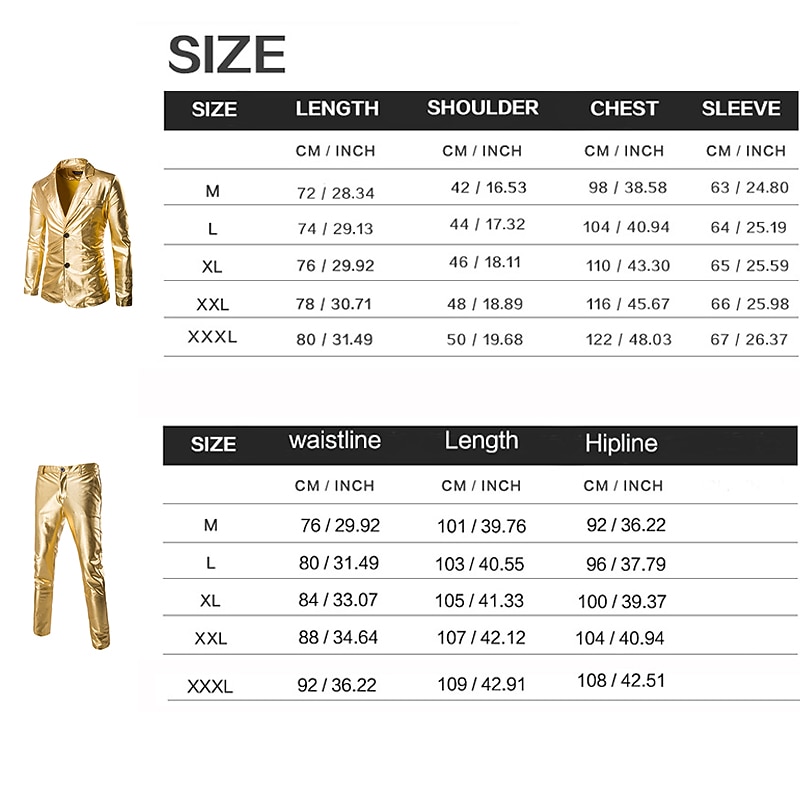 More information about Disco 1980s Pants Suits & Blazers Lapel Collar Blazer Shiny Metallic Solid Color Turndown Fancy Dress Men's Carnival Costume Christmas Halloween Carnival Party Club Pride Parade Adults' Tuxedo Spring