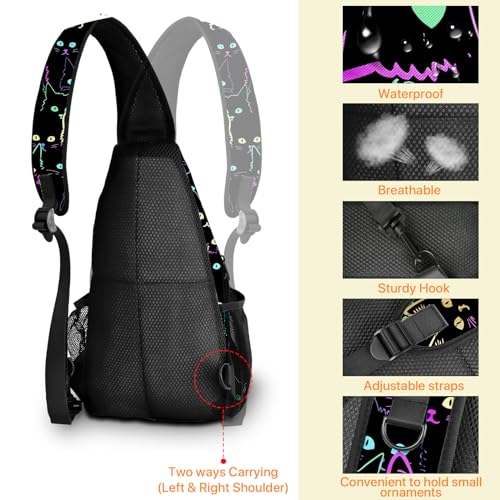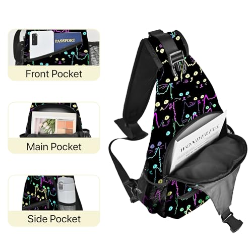 Yrebyou Colorful Cat Sling Bag Travel Crossbody Backpack Shoulder Daypack Hiking chest Pack for Women Lightweight Waterproof Adjustable Outdoor Workout 6