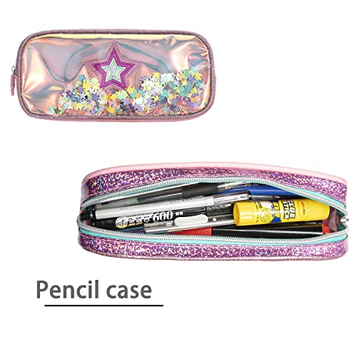 3PCS Rolling Backpack for Girls Backpack with Wheels Girls Backpack with Lunch Box Set Kids Suitcase for Girls Kids Wheeled Bookbag with Roller for Elementary School Sequin School Bag with Wheels 5