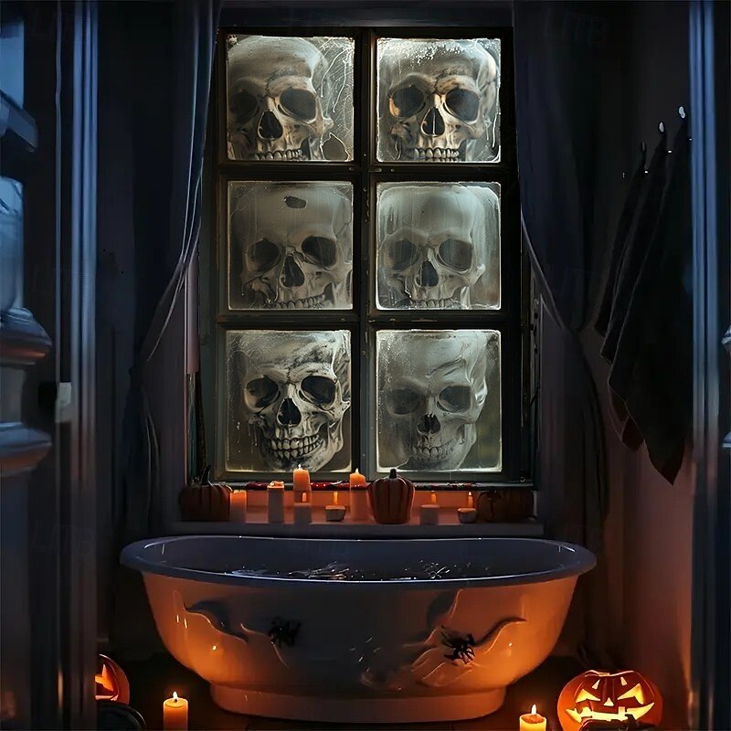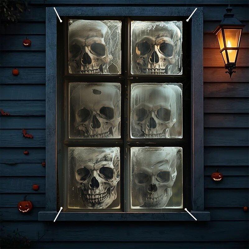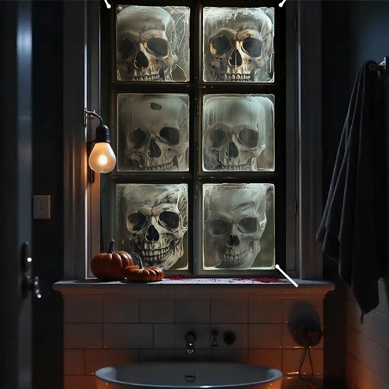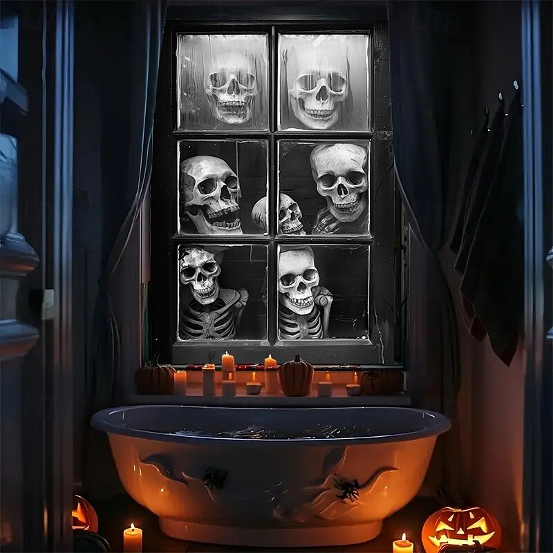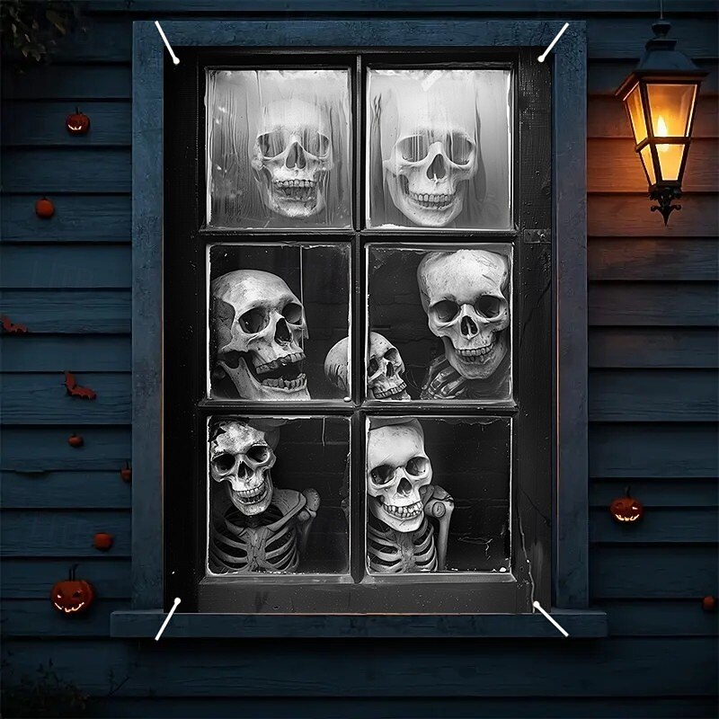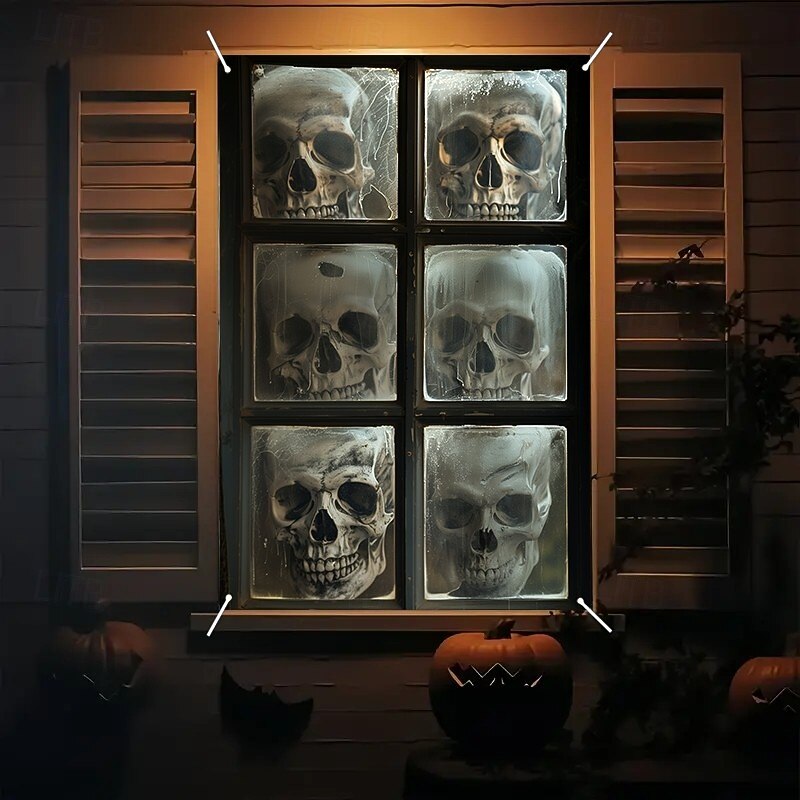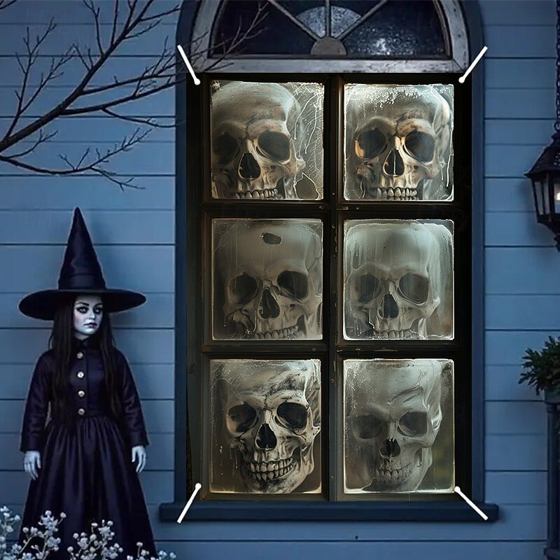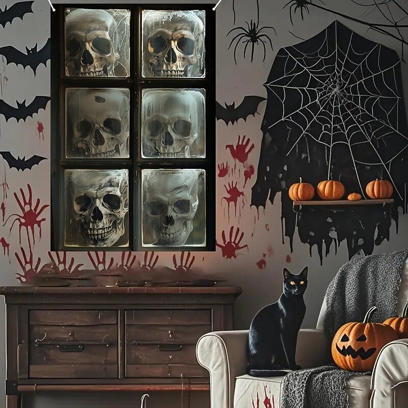 HOT ! Halloween Window Curtain Creepy Skull Collage Black and White, Scary Door Cover, Window cover, Wall Tapestry for 2025 Halloween Haunted House and Home decoration