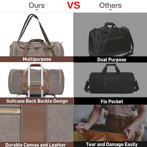 More information about 60L Travel Bags for Men, Nomad Canvas Duffle Bag Vintage Genuine Leather Travel Duffel Bag Multifunctional Weekender Overnight Backpack with Shoes Compartment (Grey, X Large-60L)