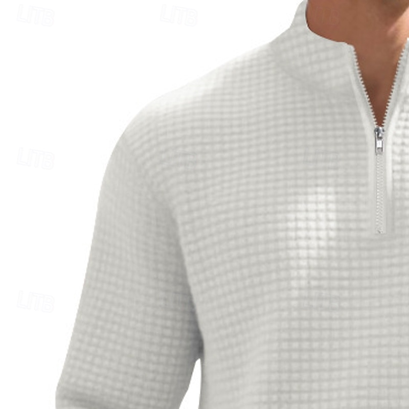 More information about Men's Sweatshirt Waffle Sweatshirt Quarter Zip Sweatshirt Black White Wine Army Green Khaki Hooded Plain Zipper Textured Sports & Outdoor Casual Daily Streetwear Cool Sportswear Spring & Fall