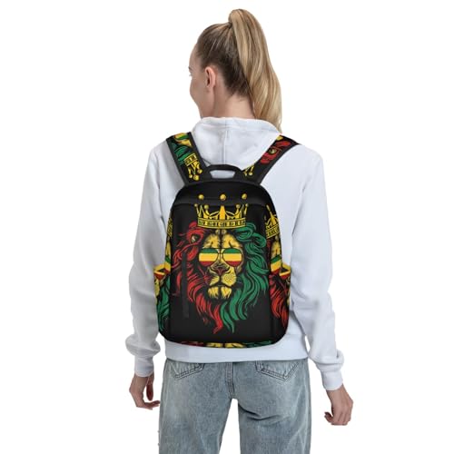 Men Women Bookbag Reggae king Rasta Flag Lion Black Laptop & Tablet Backpack for Travel, & Work 7