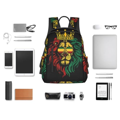 Men Women Bookbag Reggae king Rasta Flag Lion Black Laptop & Tablet Backpack for Travel, & Work 5
