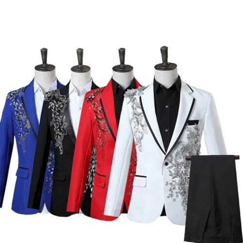 HOT ! Men's Appliqued Suit 2 Piece Set Wedding Banquet Dance Prom Christmas Formal Blazer and Pants