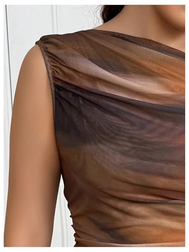 • Features: Plus size going out tops for women, tie dye, mesh, see through, one shoulder, asymmetrical hem, ruched, short sleeve, lettuce trim