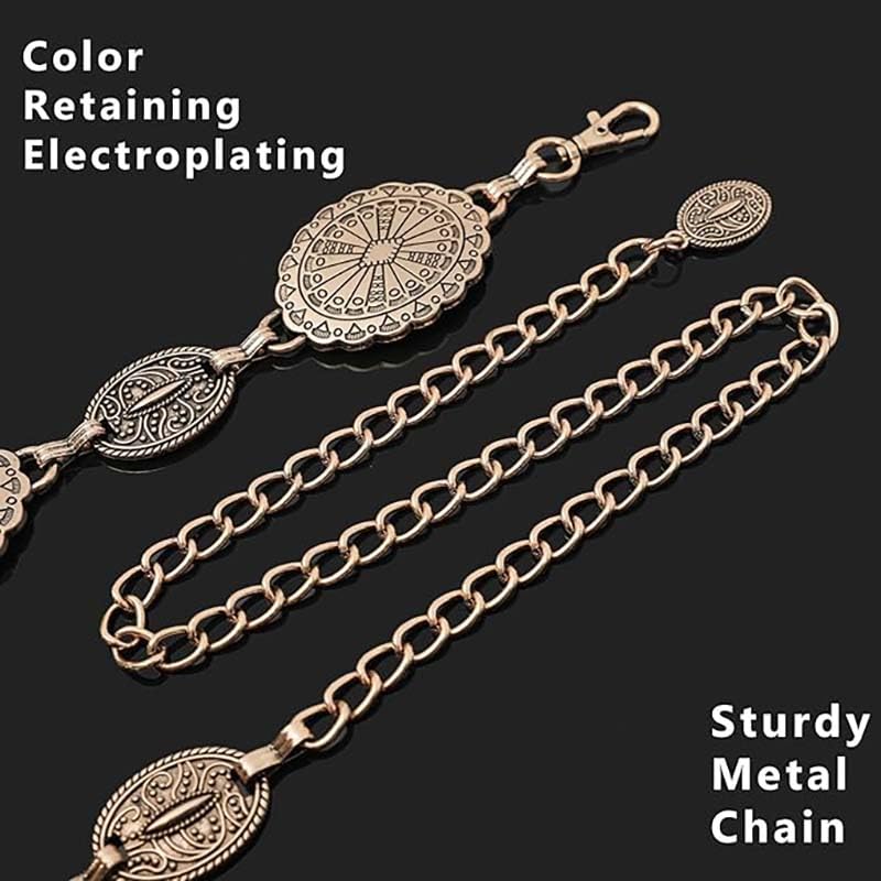 Women's Cowgirl Metal Concho Chain Belt 45" Fit Adjustable for Dresses, Jeans TrousersConcert Outfit Essential 3