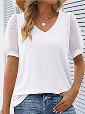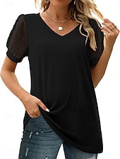 More information about Women's T Shirt Plain Fashion Modern Casual Short Sleeve V Neck Regular Tops Daily Weekend Lace Patchwork Black White Summer Spring