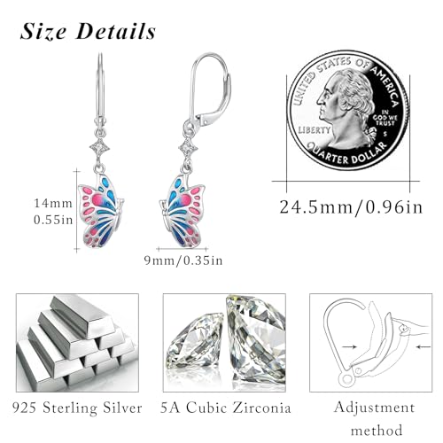 • 【Drop Earring Size】: Butterfly dangle earrings are lightweight and comfortable to wear. Measures 0.79"/20 mm x 0.63"/15.9 mm, pure earring weight 0.1 oz/2.8 g. Take care of your ears 24 hours a day.