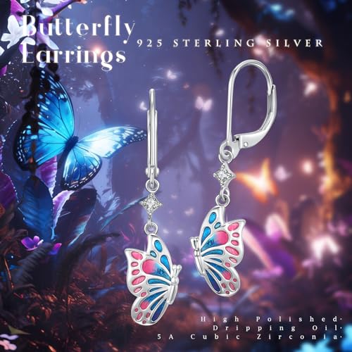 Butterfly Earrings 925 Sterling Silver Butterfly Drop Earrings Hypoallergenic Cubic Zirconia Butterfly Jewelry for Mother's Day Valentine Birthday Gifts 6