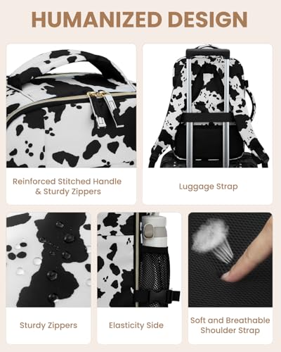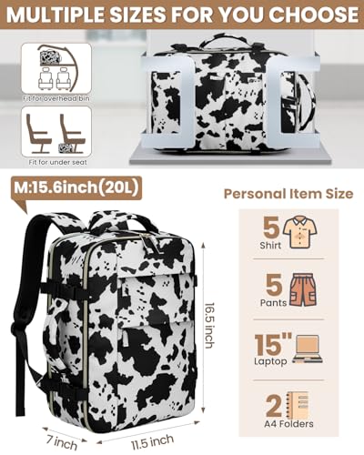 Travel Backpack for Women Man, Waterproof Personal Item Travel Bag Airline Approved Laptop Backpack Weekender bags Bookbag for Business,Travel, Work Fits 15.6 inch Laptop(Medium,Cowprint) 6
