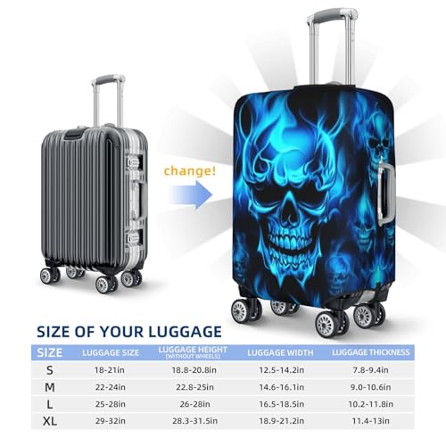 Travel Luggage Cover, High Elasticity Zipper Closure Luggage Suitcase Protector, Anti-Scratch Luggage Case Bag - Fits 19-32 inch Luggages (Skull Blue Flame) 7