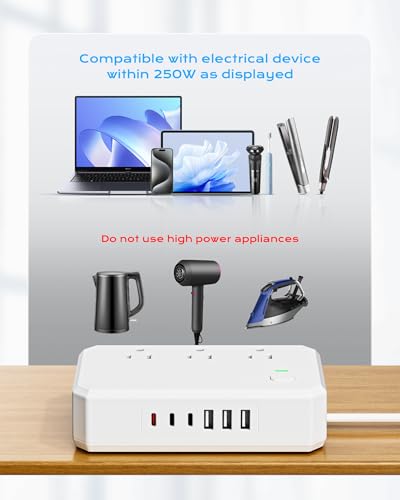 • 12 in 1 travel adapter: 6 AC sockets, 6 USB ports, USB C can provide up to 4.5A charging, AC socket can provide up to 250W total power