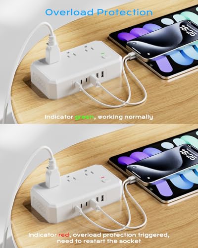 • 5ft Extension Cord can be cleverly wrapped around the bottom of the power strip. Easy to store, compact size (4.36*2.41*1.93 inches), lightweight, portable to carry, suitable for a business trip and travel