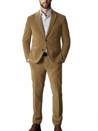 VENNYNG Corduroy Men's 2-Piece Suit Slim Fit Casual Blazer Dress Pants Set for Wedding Office Fall Winter 2