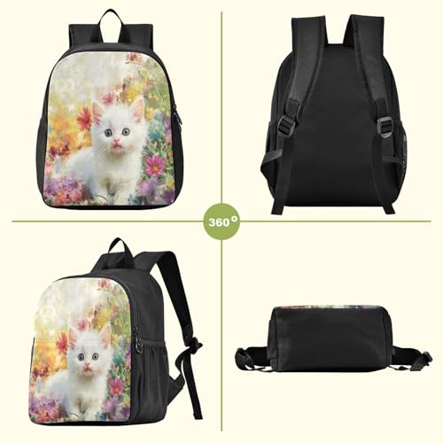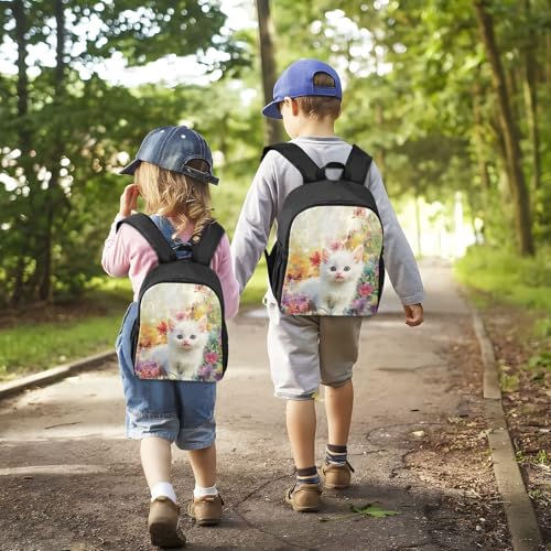 RunningBear Cat Flowers Beige Kids Backpack for Boys Girls Lightweight Schoolbag for Girls School 7