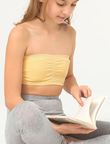 Suekaphin Girls Training Bra Padded Seamless Soft Bras for Girls Bandeau Bra Strapless Tube Bra with Removable Pads Pack of 3 4