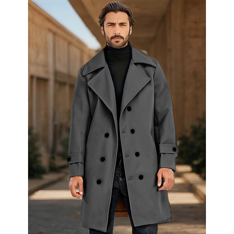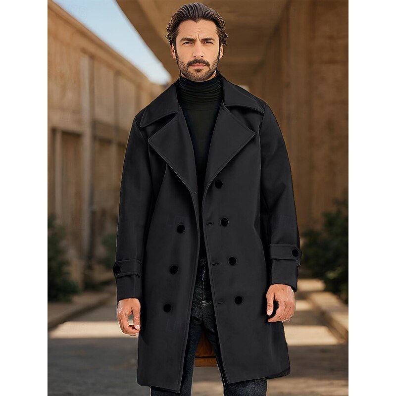 Highlights [Fabric] Crafted from a blend of 95% polyester and 5% cotton, this men's winter coat delivers both comfort and durability. The fabric is designed to provide thermal warmth, making it an excellent choice for cold weather while ensuring a polished appearance. [Fit] This coat boasts a long, structured, and tailored silhouette that compliments the wearer's frame. The classic style combined with a practical fit makes it suitable for various builds and occasions. [Design Highlights] Featuring a timeless double-breasted front with prominent black buttons, this coat exudes elegance and sophistication. The addition of a notch lapel collar and buttoned straps on the cuffs add functionality and a modern touch, allowing for an adjustable fit. [Occasions] Perfect for both formal and casual occasions, this versatile coat is ideal for daily wear, vacations, and social outings during the fall and winter seasons. It seamlessly transitions from leisurely weekends to more dressy events, making it a staple in any wardrobe. [Size Range] Available in a wide range of sizes from S to XXXL, ensuring a fit that caters to diverse body types and preferences.