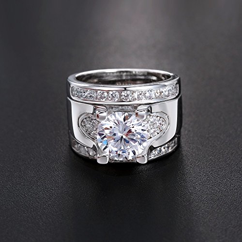 • [EXQUISITE DESIGN] Large stone ring is a beautiful way to tell your special lover how you feel about her. It is ultra and fashion. Every woman deserves it cz paved bridal ring set.