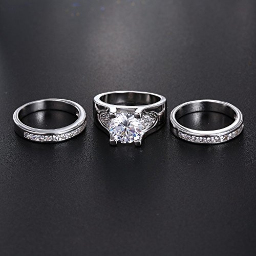 3 PCS Round Cut CZ Bridal Sets - 5.56 Ct Cubic Zirconia Silver Color Promise Engagement Wedding Rings Set for Women 6