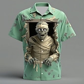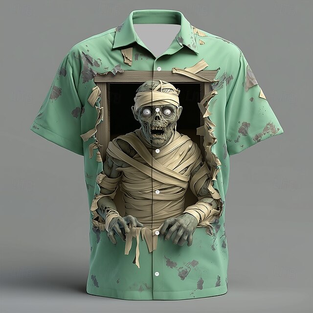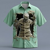 More information about Halloween Men's Zombies Mummy Cracked Wall Shirt Button Up Shirt Short Sleeve Dark Gothic Style Holiday Streetwear Summer Spring Turndown 3D Print Collared Shirts Light Green Green