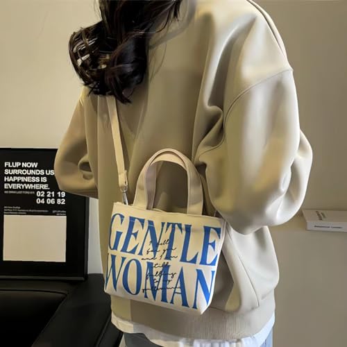 Cute Gentle Woman Crossbody Tote Bag Canvas Handheld Shoulder Bag with Portable Handles Office Travel Essentials 6