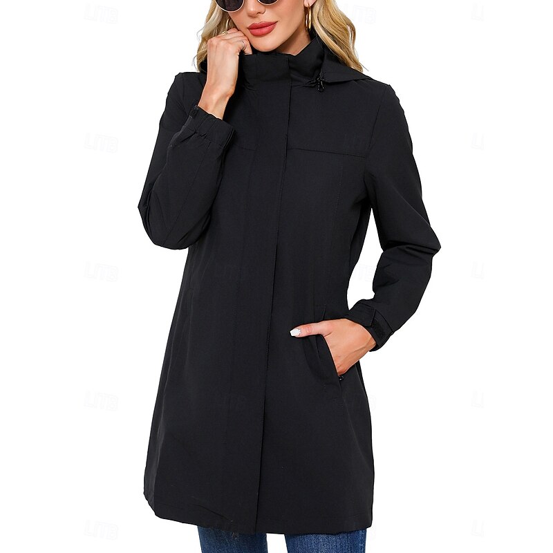 Highlights [Product Highlights] [Fabric]: Crafted from high-quality polyester, this women's casual jacket offers durability and comfort, making it perfect for fall and winter. The inelastic nature of the fabric contributes to its sleek and structured appearance, ensuring the garment maintains its shape. [Fit Type]: Designed with a loose fit, this jacket provides both comfort and style, allowing for effortless layering over casual or semi-formal outfits. It's perfect for adding a touch of sophistication to your wardrobe while accommodating sweaters or blouses beneath. [Design Highlights]: This jacket features a versatile solid color pattern and a sophisticated turndown neckline. The front zipper design is complemented by a snap button placket, providing secure coverage and windproof capabilities. An adjustable hood with drawstrings adds functionality, making it ideal for fluctuating weather conditions. Additionally, the jacket includes long sleeves with adjustable cuffs for a better fit and added comfort. [Occasions]: Perfect for vacation or work, this fashion-forward outerwear is designed to suit various occasions. Whether you're heading to the office or enjoying a casual outing, this jacket's blend of practicality and style ensures you make a statement. [Size Availability]: Available in a wide range of sizes from S to 2XL, this jacket caters to various body types and preferences, providing an ideal fit for every woman.