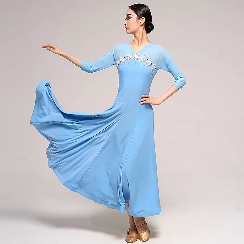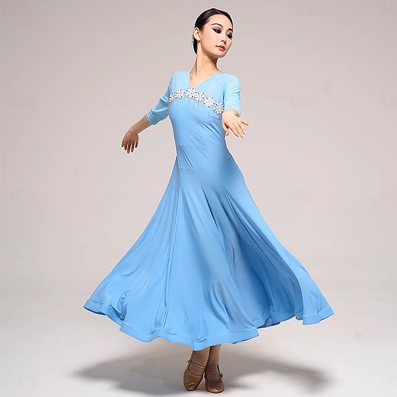 $186.99 - Ballroom Dance Dress Splicing Crystals / Rhinestones Women's Performance Party 3/4 Length Sleeve Crystal Cotton Mesh 2025. Shop for cheap Standard  Ballroom online? Buy at lightinthebox.com on sale today!