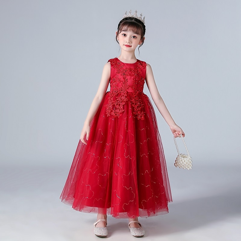 More information about Kids Girls' Flower Girl Dress Dress Flower Sleeveless Wedding Party Bow Princess Sweet Polyester Maxi Pink Princess Dress Flower Girl's Dress Summer 4-13 Years White Pink Wine