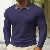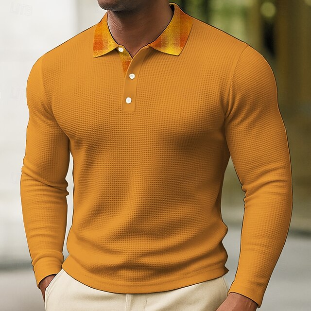 More information about Halloween Men's Plain Waffle Polo Shirts Long Sleeve Polo Shirts Lapel Casual Daily Wear Buttons Summer Fall Light Green Navy Blue Orange