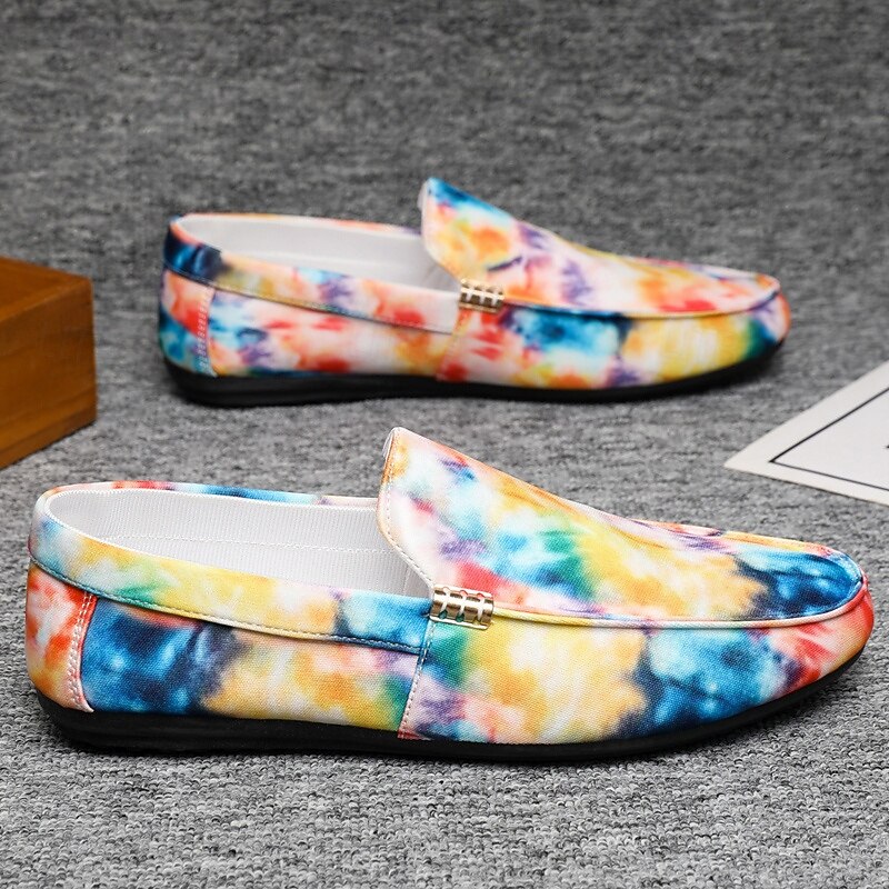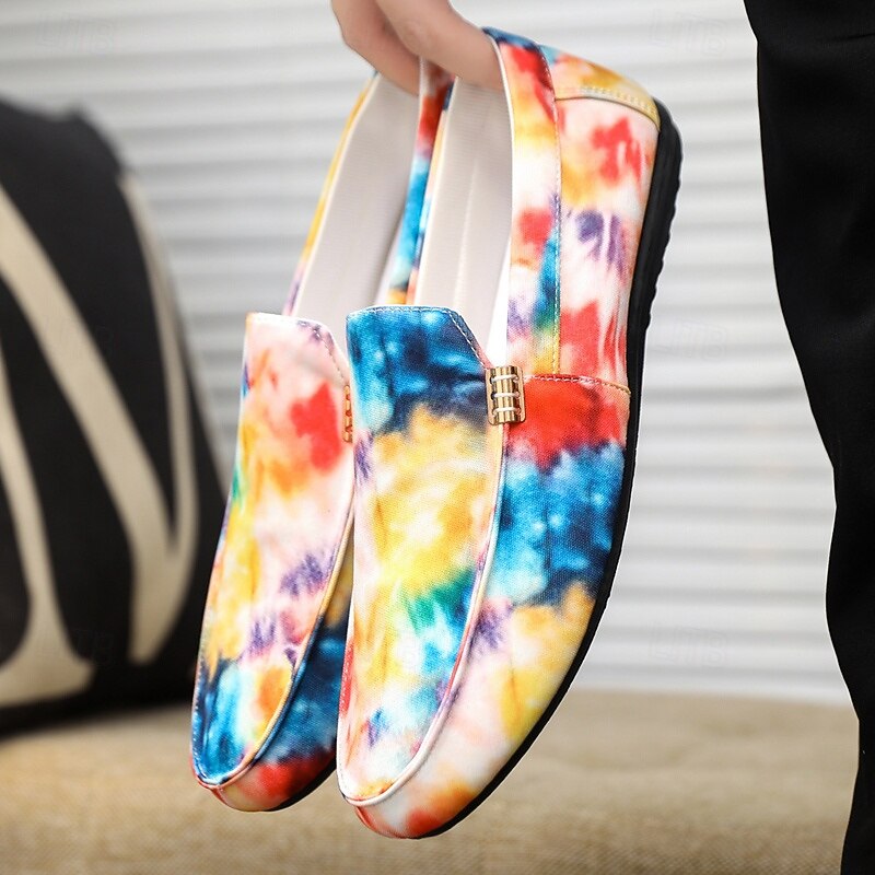 HOT ! Men's Colorful Tie-Dye Slip-On Loafers – Casual Canvas Fashion Shoes for Parties, Festivals and Streetwear