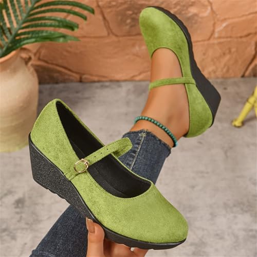 HOT ! Women's Mary Jane Wedge Heels - Comfortable Dressy Suede Round Toe Ankle Strap Shoes for Women, Orthopedic Soft Sole