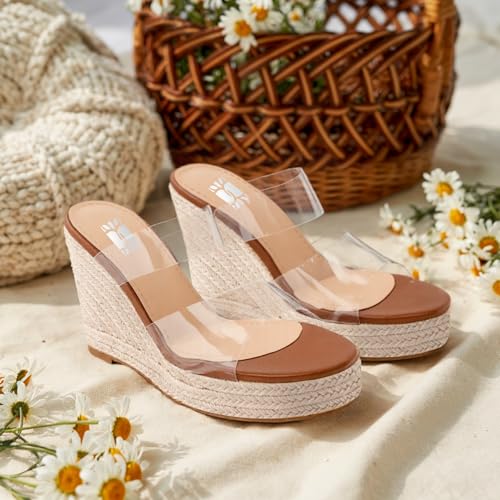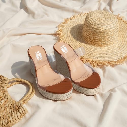 VARECOLA Women Slip On Espadrille Platform Wedge Sandals Slide Open Toe Clear High Heel Sandals 6