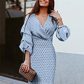 More information about Women's Mini Dress Casual Dress Work Dress Fashion Outdoor Party Holiday Regular Fit Polka Dot 3/4 Length Sleeve V Neck Blue Summer