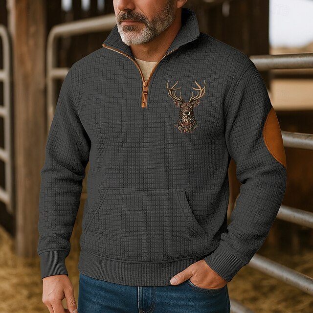 More information about Men's Sweatshirt Waffle Sweatshirt Pullover Hoodie Sweatshirt Pullover Quarter Zip Sweatshirt Black White Navy Blue Khaki Dark Gray Standing Collar Plain Patchwork Sports & Outdoor Casual Daily
