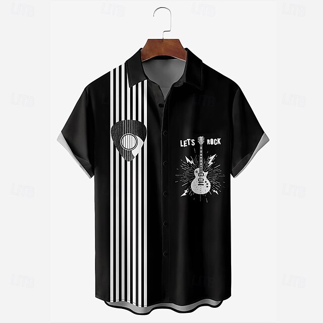 More information about Men's Boardmasters Striped Guitar Shirt Summer Shirt Button Up Shirt Short Sleeve Vintage Retro Outdoor Vacation Dailywear Summer Spring Turndown 3D Print Collared Shirts Front One Pocket Black 1