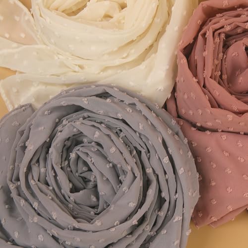 Jacquard Bubble Chiffon Scarf Shawl Pom Pom 3D Dotted 3PCS Headwraps Hijab 5