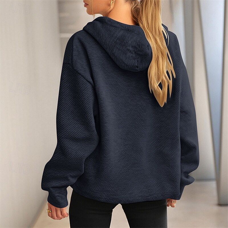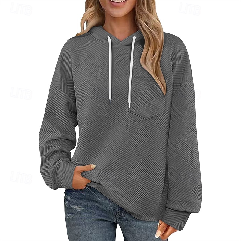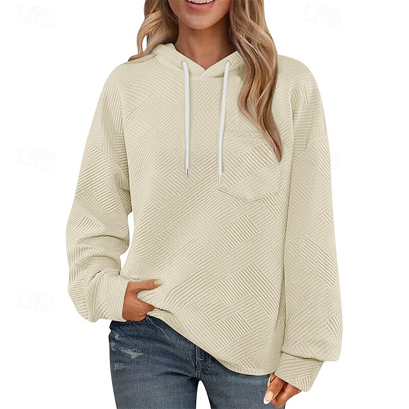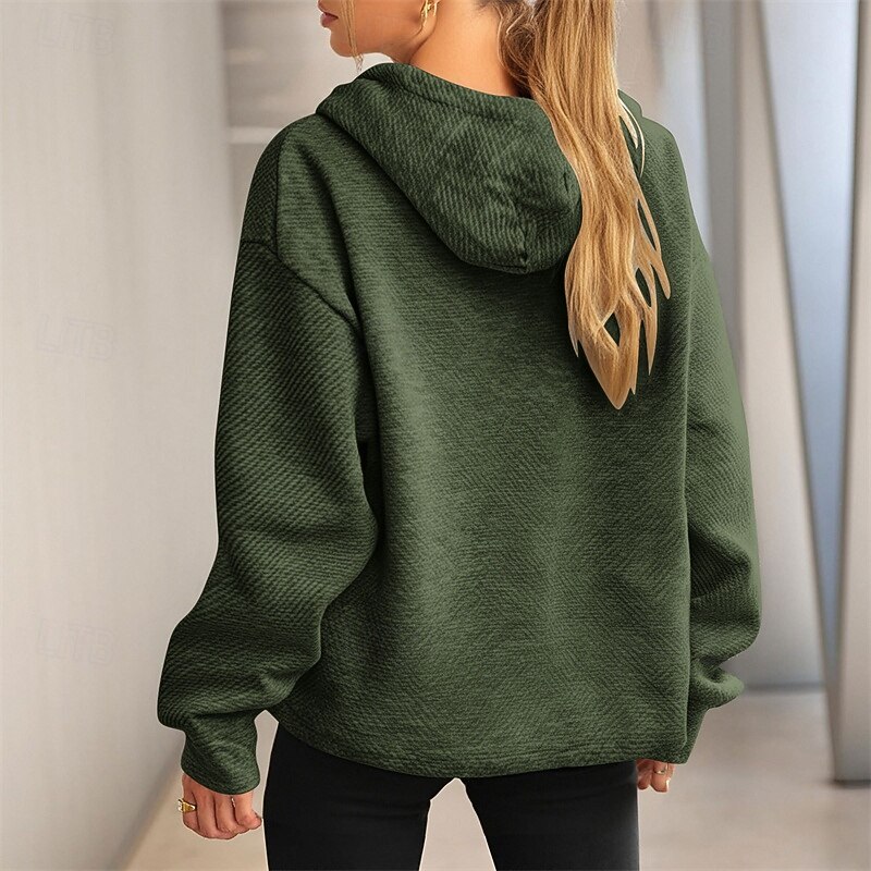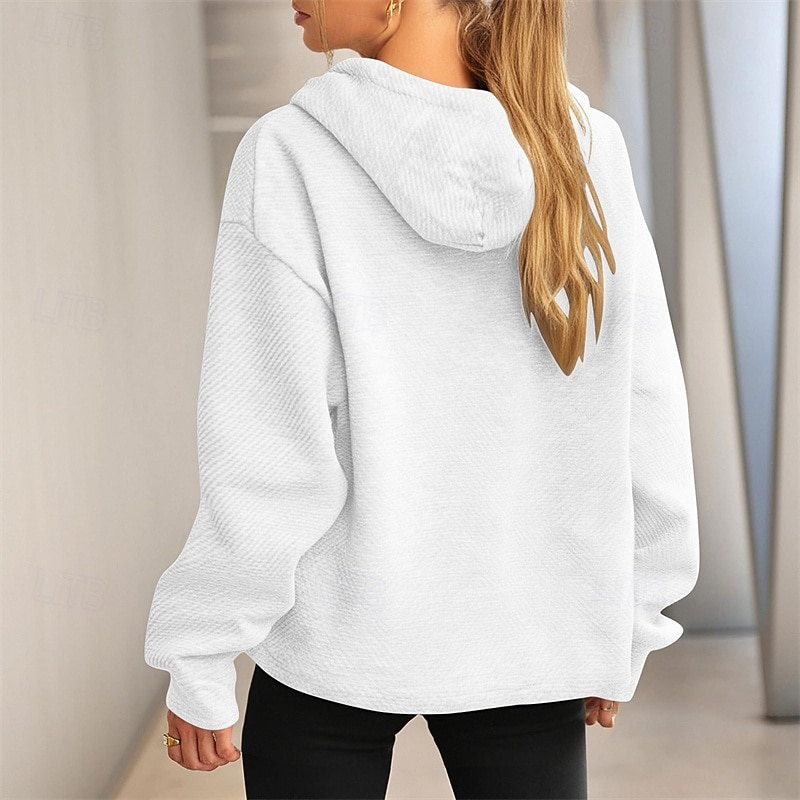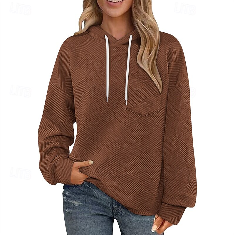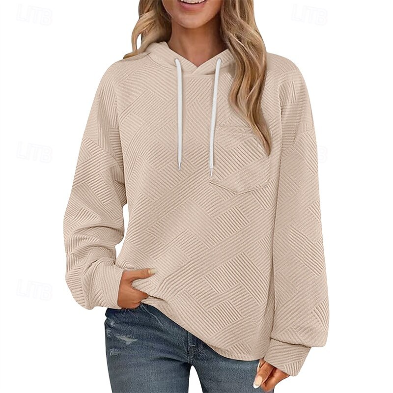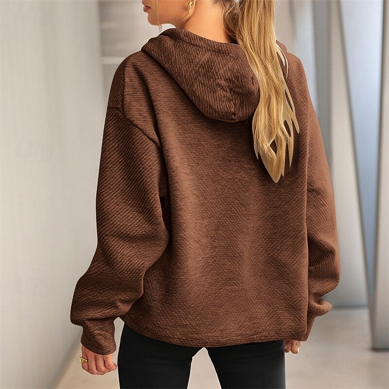 More information about Women's Texture Sweatshirt Pullover Hoodie Sweatshirt Plain Streetwear Casual Long Sleeve Hooded Regular Tops Street Holiday Drawstring Black White Brown Khaki Army Green Spring Fall